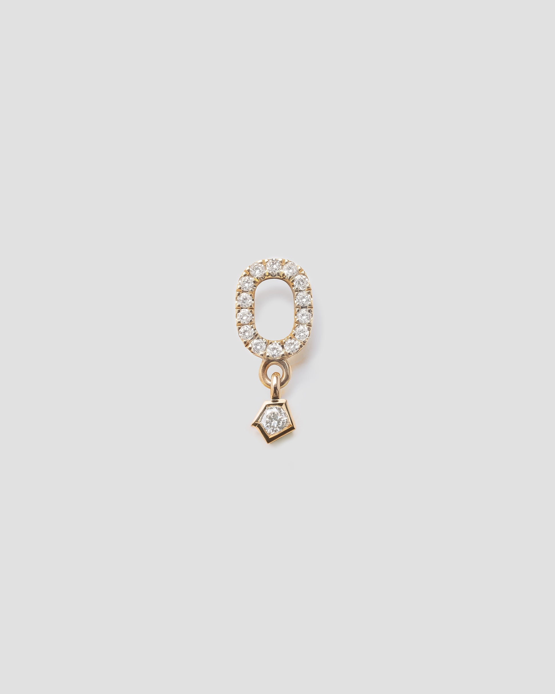 Paved with fourteen brilliant-cut lab-grown diamonds and finished with a bezel-set center stone, the Echo Pendant is crafted in recycled 14k yellow gold and sold individually. It is designed to hang from your favorite hoop earring, offering a clean and modern silhouette.